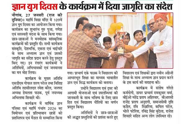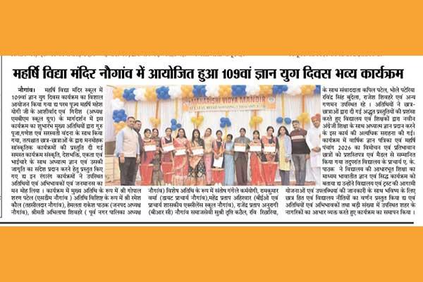 A grand event of 109th Gyan Yug Diwas programme was organised at Maharishi Vidya Mandir, Naugaon.